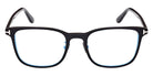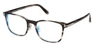 Striped Black Havana/Shiny Palladium/T Logo (020) Eyeglasses with Blue Block lenses (FT5925-D-B 020 52) by Tom Ford™. Size: 52-20-145, Shape: Square, Material: Plastic.