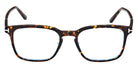Colored Havana (056) Eyeglasses with Blue Filter lenses (FT5928-D-B 056 53) by Tom Ford™. Size: 53-19-145, Shape: Square, Material: Plastic.