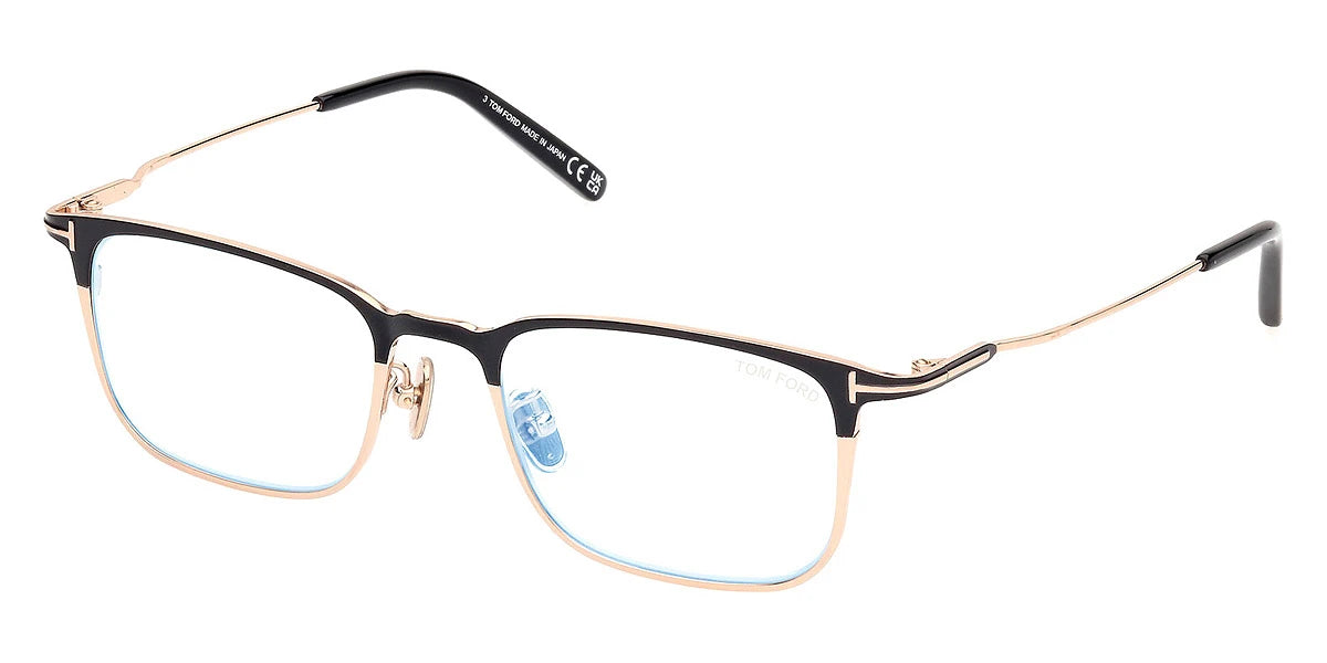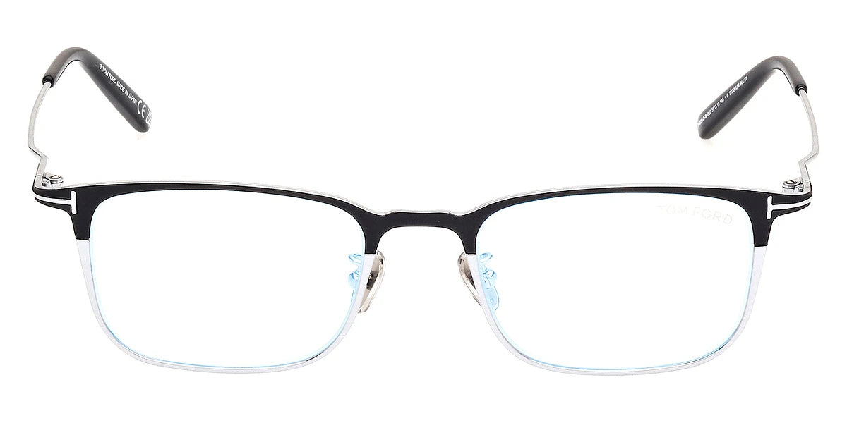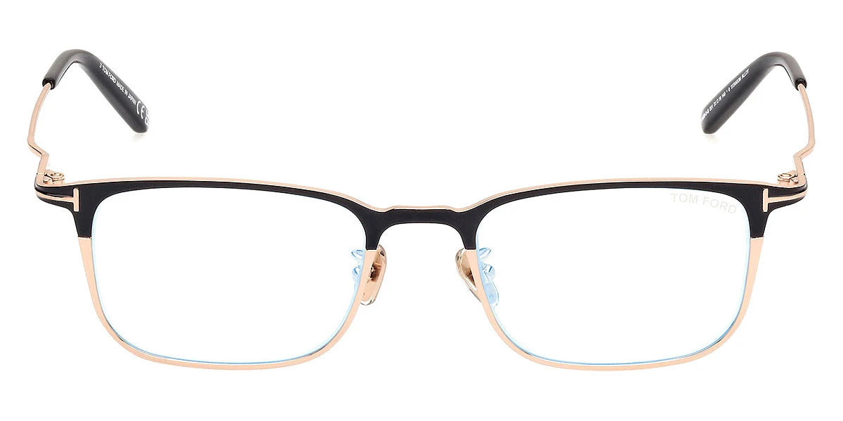 FT5929-D-B Eyeglasses by Tom Ford™. The square shape design feature a full rim titanium frame. This model is available in three different color combinations and sizes. The exclusive Tom Ford eyeglasses collection is inspired by the elegance of the iconic 1950s silhouettes and the extravagance of the 1970s. Featuring the finest combination of metal and acetate, the frames are both lightweight and durable. The spectacles boast various refined details, including the brand's famous ‘T' metal logo on the temples, as well as bold color combinations and unique patterns, reflecting the latest fashion trends. Some models feature Blue Block lenses that prevent and reduce eye strain when using digital devices, thus improving visual comfort while completing the outfit as a stylish accessory.