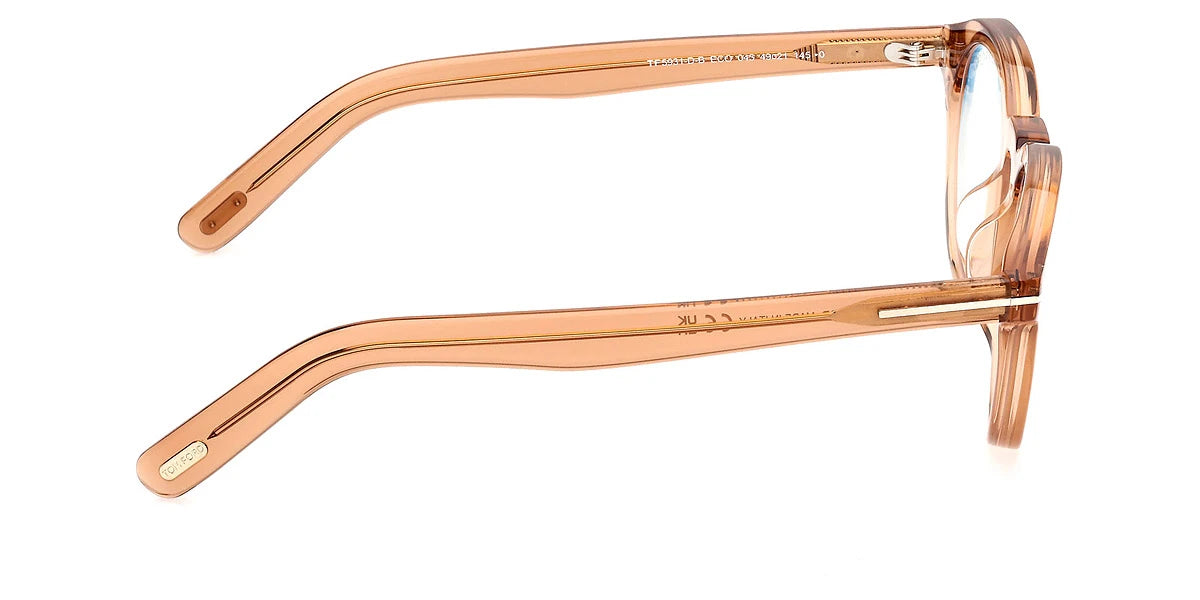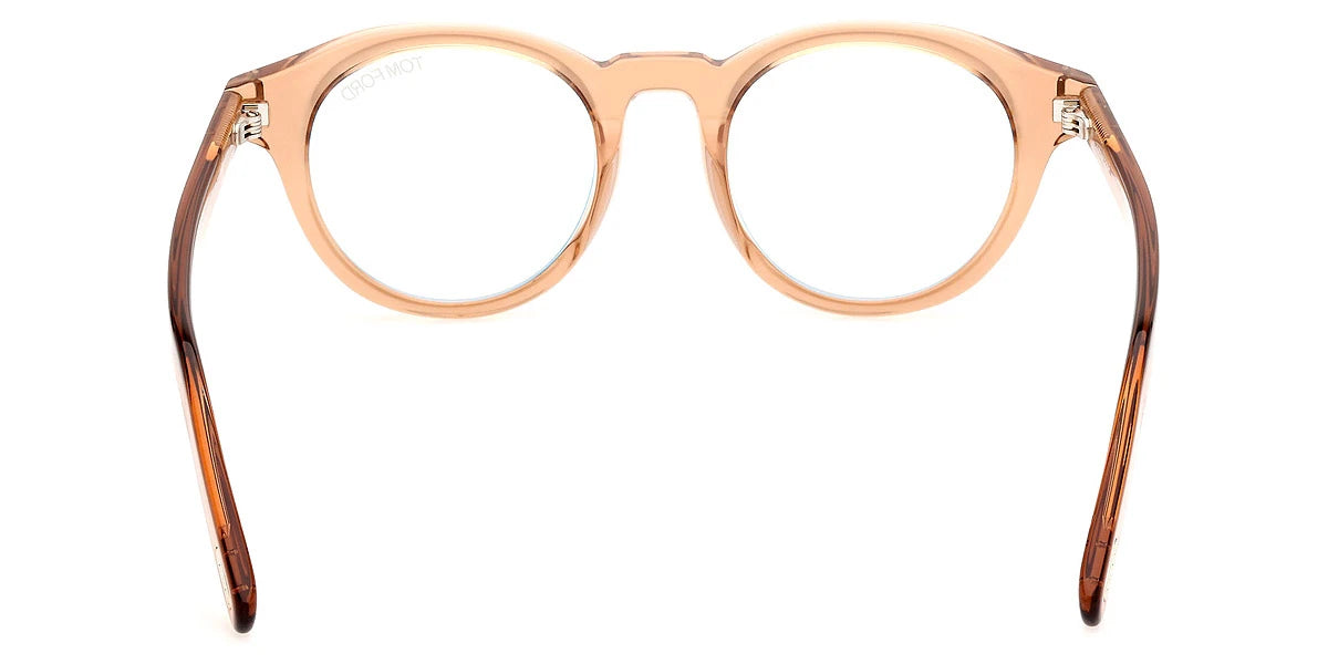 Shiny Light Brown (045) Eyeglasses with Blue Filter lenses (FT5931-D-B 045 49) by Tom Ford™. Size: 49-21-145, Shape: Round, Material: Plastic.