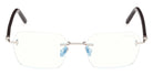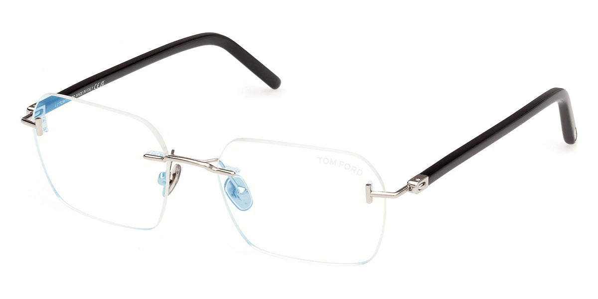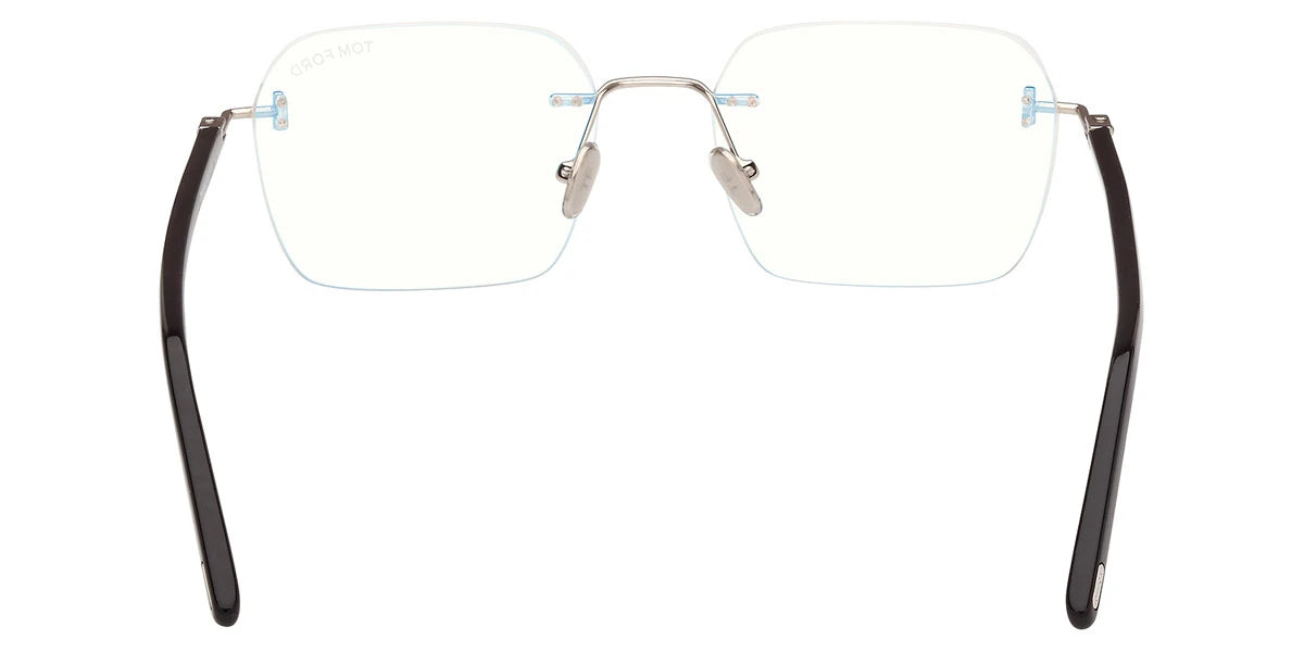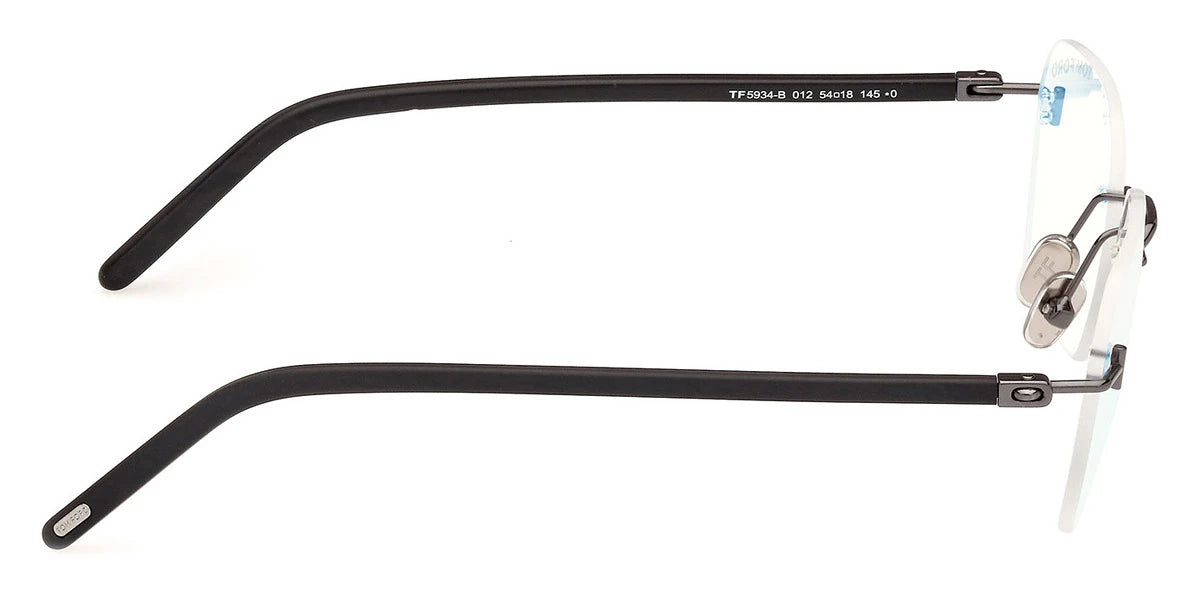 FT5934-B Eyeglasses by Tom Ford™. The rectangle shape design feature a rimless metal frame. This model is available in three different color combinations and sizes. The exclusive Tom Ford eyeglasses collection is inspired by the elegance of the iconic 1950s silhouettes and the extravagance of the 1970s. Featuring the finest combination of metal and acetate, the frames are both lightweight and durable. The spectacles boast various refined details, including the brand's famous ‘T' metal logo on the temples, as well as bold color combinations and unique patterns, reflecting the latest fashion trends. Some models feature Blue Block lenses that prevent and reduce eye strain when using digital devices, thus improving visual comfort while completing the outfit as a stylish accessory.