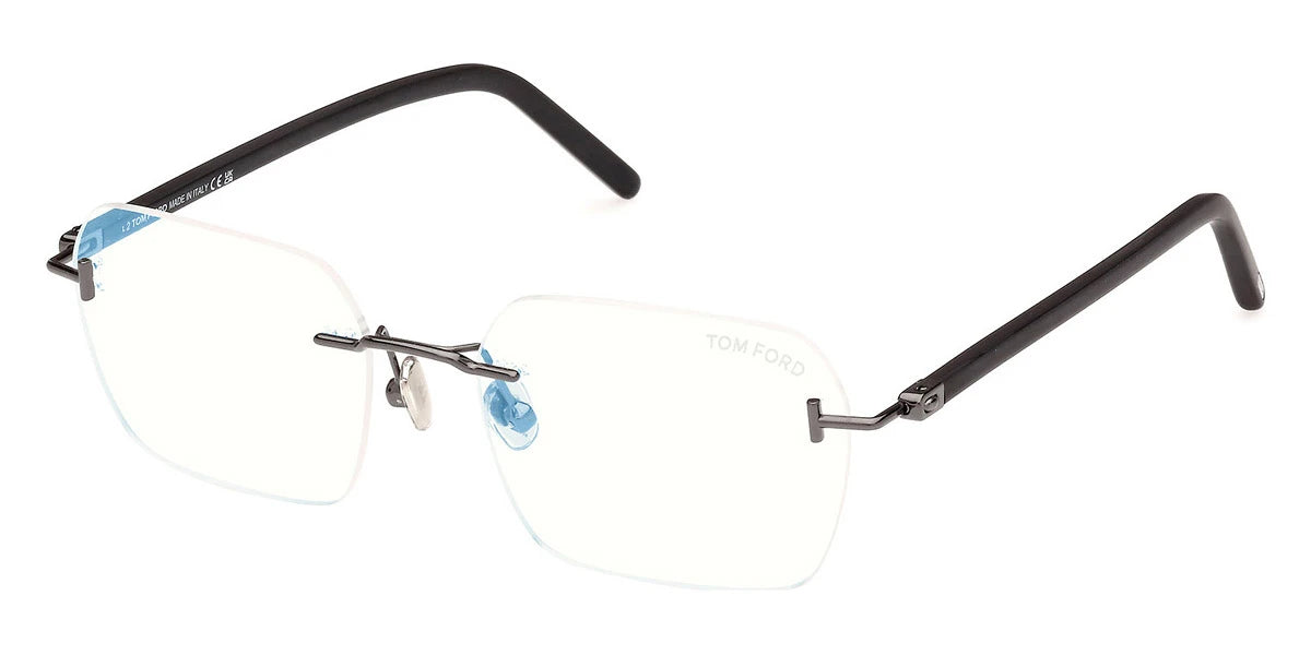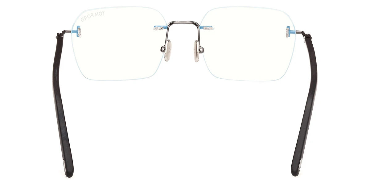 Shiny Dark Ruthenium (012) Eyeglasses with Blue Filter lenses (FT5934-B 012 54) by Tom Ford™. Size: 54-18-145, Shape: Rectangle, Material: Metal.