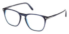 Dark Havana (052) Eyeglasses with Blue Filter lenses (FT5937-B 052 52) by Tom Ford™. Size: 52-18-145, Shape: Round, Material: Plastic.