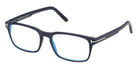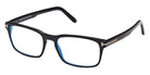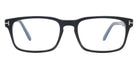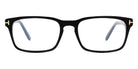 Shiny Black (001) Eyeglasses with Blue Filter lenses (FT5938-B 001 54) by Tom Ford™. Size: 54-18-145, Shape: Rectangle, Material: Plastic.