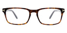 FT5938-B Eyeglasses by Tom Ford™. The rectangle shape design feature a full rim plastic frame. This model is available in three different color combinations and sizes. The exclusive Tom Ford eyeglasses collection is inspired by the elegance of the iconic 1950s silhouettes and the extravagance of the 1970s. Featuring the finest combination of metal and acetate, the frames are both lightweight and durable. The spectacles boast various refined details, including the brand's famous ‘T' metal logo on the temples, as well as bold color combinations and unique patterns, reflecting the latest fashion trends. Some models feature Blue Block lenses that prevent and reduce eye strain when using digital devices, thus improving visual comfort while completing the outfit as a stylish accessory.