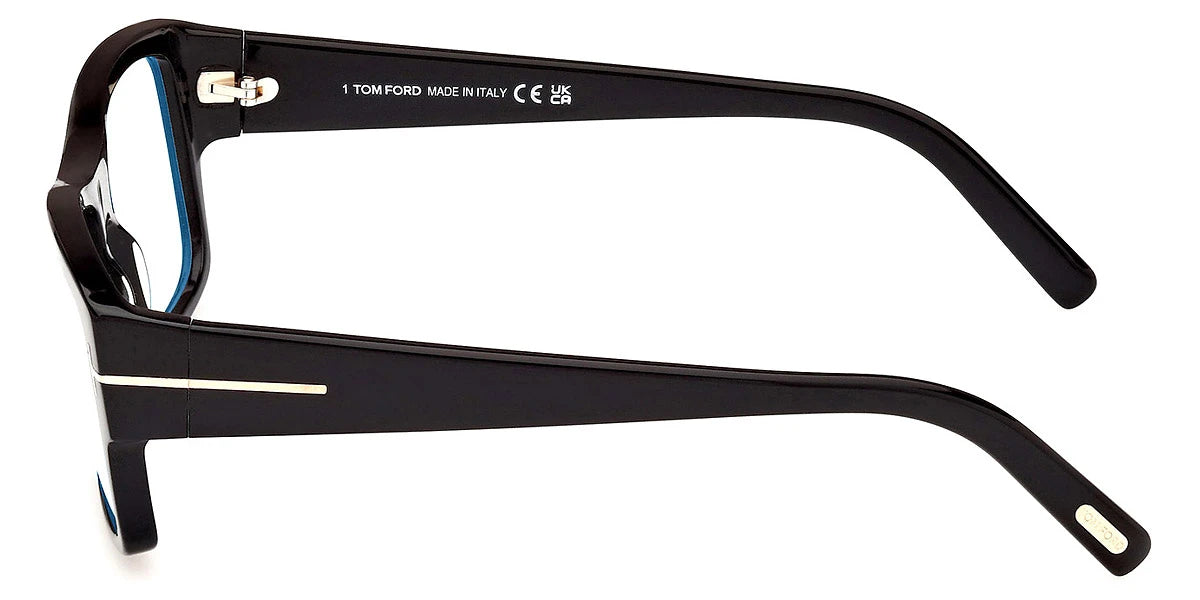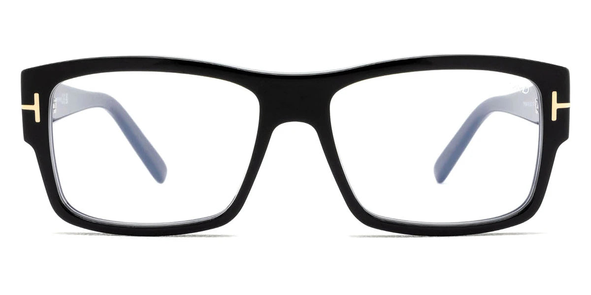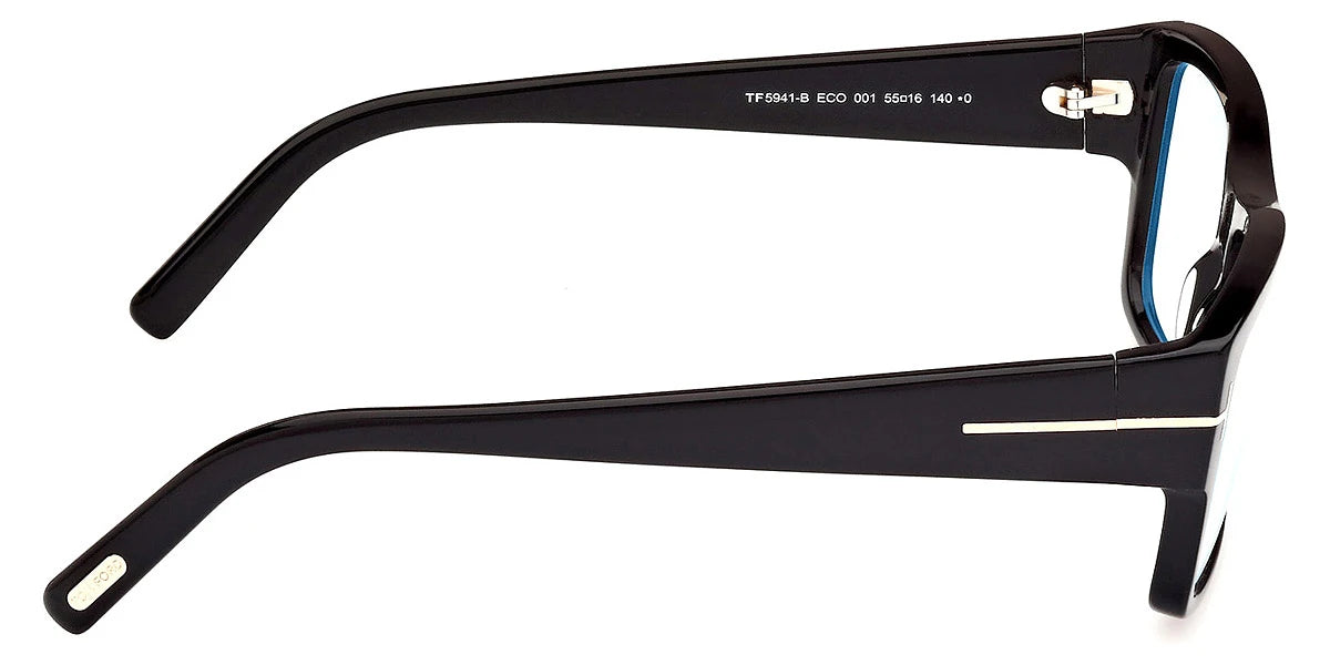 Shiny Black (001) Eyeglasses with Blue Filter lenses (FT5941-B 001 55) by Tom Ford™. Size: 55-16-140, Shape: Square, Material: Plastic.