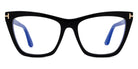 Shiny Black (001) Eyeglasses with Blue Filter with Smoke Clip lenses (FT5971-B 001 54) by Tom Ford™. Size: 54-17-140, Shape: Cat-Eye, Material: Plastic.