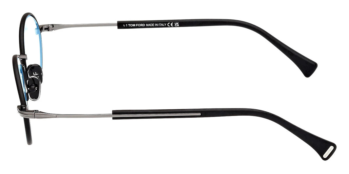 Matte Black/Shiny Gunmetal (020) Eyeglasses with Blue Filter lenses (FT5973-B 020 49) by Tom Ford™. Size: 49-20-145, Shape: Round, Material: Metal.