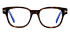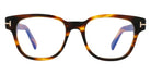 Shiny Dark Brown (050) Eyeglasses with Blue Filter lenses (FT5977-B 050 50) by Tom Ford™. Size: 50-18-145, Shape: Square, Material: Plastic.