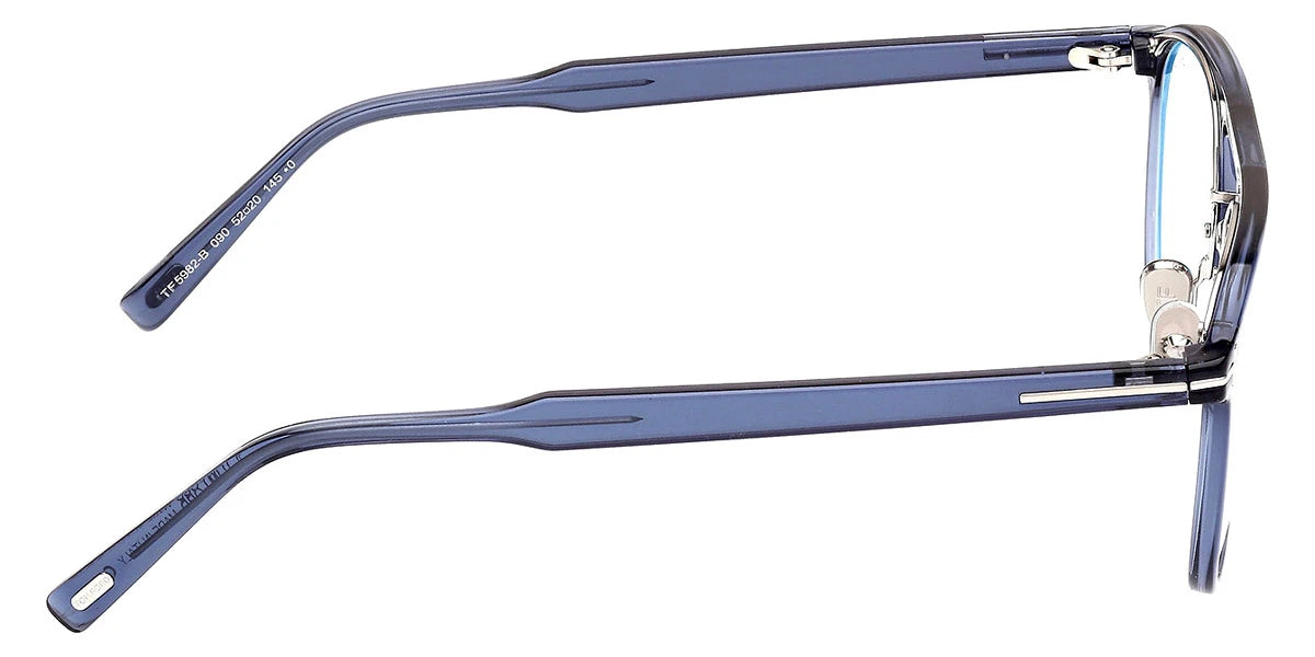Shiny Blue (090) Eyeglasses with Blue Filter lenses (FT5982-B 090 52) by Tom Ford™. Size: 52-20-145, Shape: Aviator, Material: Injected.