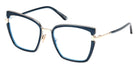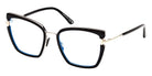 Shiny Black (001) Eyeglasses with Blue Filter lenses (FT5984-B 001 54) by Tom Ford™. Size: 54-19-140, Shape: Butterfly, Material: Metal.