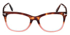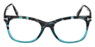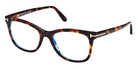 Dark Havana (052) Eyeglasses with Blue Filter lenses (FT5986-B 052 52) by Tom Ford™. Size: 52-18-140, Shape: Square, Material: Plastic.