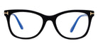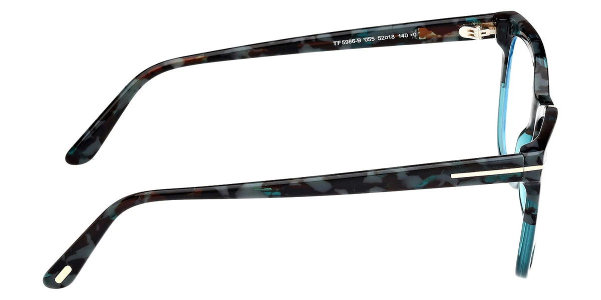 FT5986-B Eyeglasses by Tom Ford™. The square shape design feature a full rim plastic frame. This model is available in three different color combinations and sizes. The exclusive Tom Ford eyeglasses collection is inspired by the elegance of the iconic 1950s silhouettes and the extravagance of the 1970s. Featuring the finest combination of metal and acetate, the frames are both lightweight and durable. The spectacles boast various refined details, including the brand's famous ‘T' metal logo on the temples, as well as bold color combinations and unique patterns, reflecting the latest fashion trends. Some models feature Blue Block lenses that prevent and reduce eye strain when using digital devices, thus improving visual comfort while completing the outfit as a stylish accessory.
