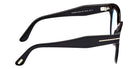 Shiny Black (001) Eyeglasses with Blue Filter lenses (FT5987-B 001 52) by Tom Ford™. Size: 52-19-140, Shape: Butterfly, Material: Plastic.