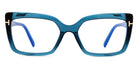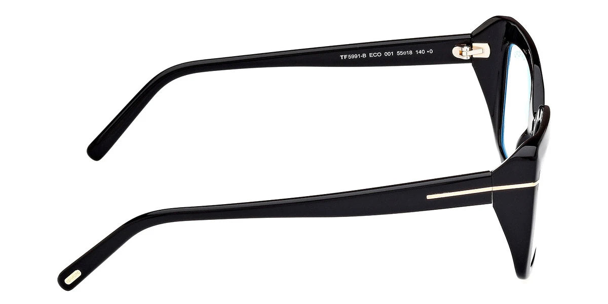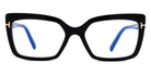 Shiny Black (001) Eyeglasses with Blue Filter lenses (FT5991-B 001 55) by Tom Ford™. Size: 55-18-140, Shape: Rectangle, Material: Plastic.