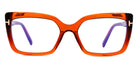 FT5991-B Eyeglasses by Tom Ford™. The rectangle shape design feature a full rim plastic frame. This model is available in four different color combinations and sizes. The exclusive Tom Ford eyeglasses collection is inspired by the elegance of the iconic 1950s silhouettes and the extravagance of the 1970s. Featuring the finest combination of metal and acetate, the frames are both lightweight and durable. The spectacles boast various refined details, including the brand's famous ‘T' metal logo on the temples, as well as bold color combinations and unique patterns, reflecting the latest fashion trends. Some models feature Blue Block lenses that prevent and reduce eye strain when using digital devices, thus improving visual comfort while completing the outfit as a stylish accessory.