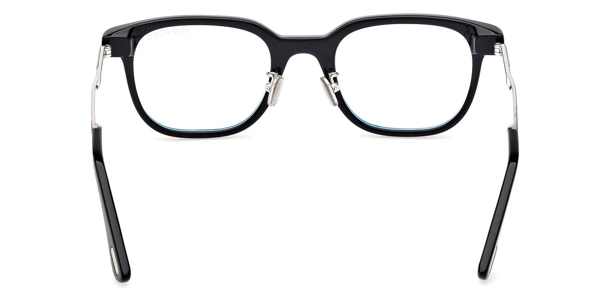 Shiny Black (001) Eyeglasses with Blue Filter lenses (FT6022-D-B 001 52) by Tom Ford™. Size: 52-22-145, Shape: Square, Material: Plastic.