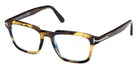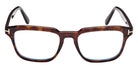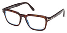 Colored Havana (056) Eyeglasses with Blue Filter lenses (FT6032-B 056 52) by Tom Ford™. Size: 52-19-145, Shape: Rectangle, Material: Plastic.