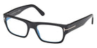 Shiny Black (001) Eyeglasses with Blue Filter lenses (FT6034-B 001 54) by Tom Ford™. Size: 54-19-140, Shape: Rectangle, Material: Plastic.
