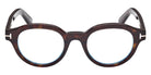Dark Havana (052) Eyeglasses with Blue Filter lenses (FT6037-B 052 49) by Tom Ford™. Size: 49-22-145, Shape: Round, Material: Plastic.