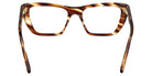FT6047-B Eyeglasses by Tom Ford™. The cat-eye shape design feature a full rim plastic frame. This model is available in three different color combinations and sizes. The exclusive Tom Ford eyeglasses collection is inspired by the elegance of the iconic 1950s silhouettes and the extravagance of the 1970s. Featuring the finest combination of metal and acetate, the frames are both lightweight and durable. The spectacles boast various refined details, including the brand's famous ‘T' metal logo on the temples, as well as bold color combinations and unique patterns, reflecting the latest fashion trends. Some models feature Blue Block lenses that prevent and reduce eye strain when using digital devices, thus improving visual comfort while completing the outfit as a stylish accessory.