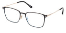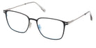 Shiny Black (001) Eyeglasses with Blue Filter lenses (FT6055-D-B 001 56) by Tom Ford™. Size: 56-19-145, Shape: Square, Material: Metal.