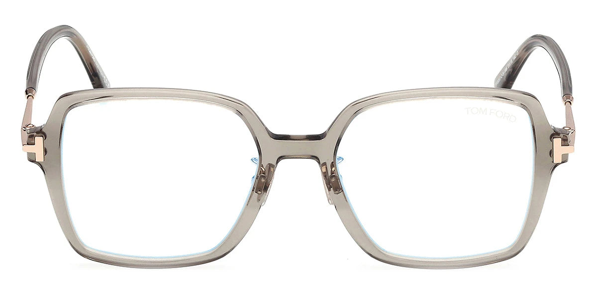 FT6057-D-B Eyeglasses by Tom Ford™. The square shape design feature a full rim plastic frame. This model is available in four different color combinations and sizes. The exclusive Tom Ford eyeglasses collection is inspired by the elegance of the iconic 1950s silhouettes and the extravagance of the 1970s. Featuring the finest combination of metal and acetate, the frames are both lightweight and durable. The spectacles boast various refined details, including the brand's famous ‘T' metal logo on the temples, as well as bold color combinations and unique patterns, reflecting the latest fashion trends. Some models feature Blue Block lenses that prevent and reduce eye strain when using digital devices, thus improving visual comfort while completing the outfit as a stylish accessory.