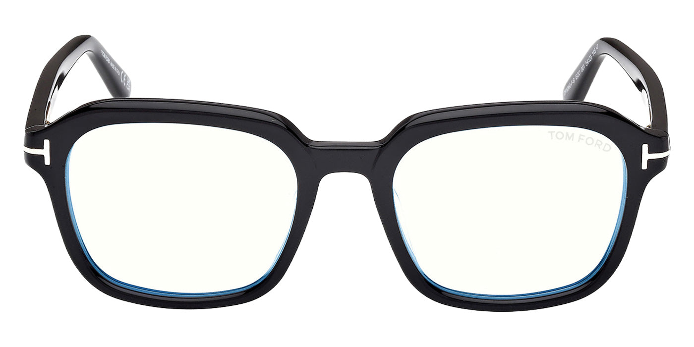 Shiny Black (001) Eyeglasses (FT6060-F-B 001 54) by Tom Ford. Size: 54-20-145, Shape: Square, Material: Plastic.