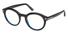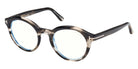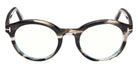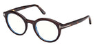 Dark Havana (052) Eyeglasses with Blue Filter lenses (FT6061-B 052 50) by Tom Ford™. Size: 50-23-145, Shape: Round, Material: Plastic.