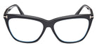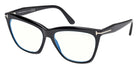 Shiny Black (001) Eyeglasses with Blue Filter lenses (FT6064-B 001 56) by Tom Ford™. Size: 56-15-140, Shape: Cat-Eye, Material: Plastic.