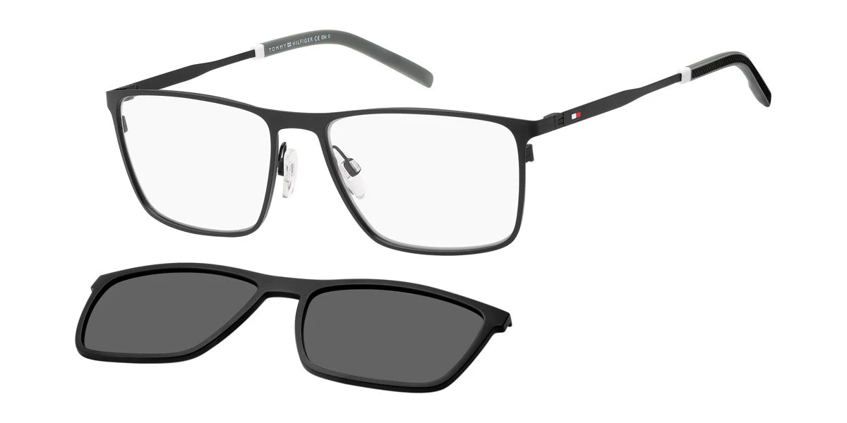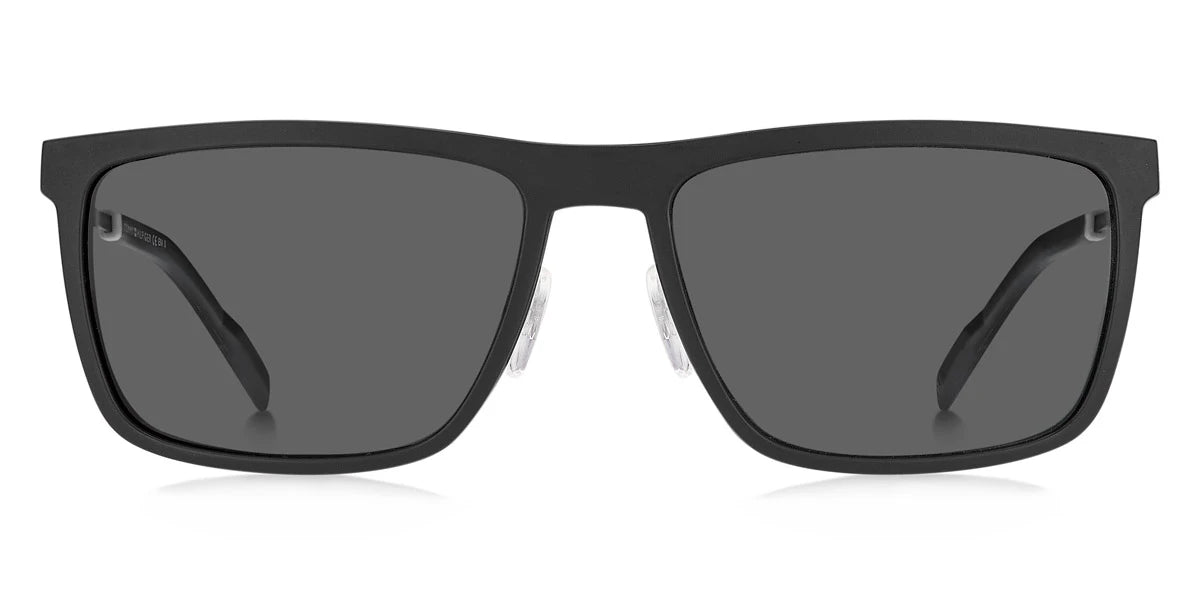 Matte Black (0003M9) Sunglasses with Gray Polarized lenses (TH 1803/cs 0003M9 58) by Tommy Hilfiger™. Size: 58-17-145, Shape: Rectangle, Material: Metal.