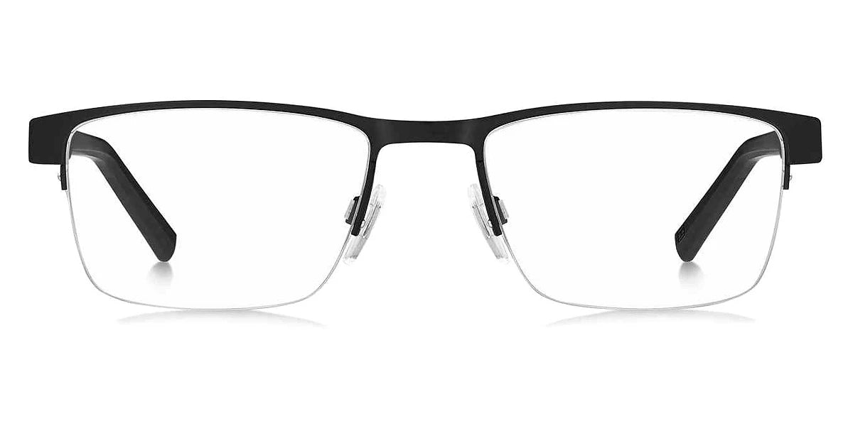 Matte Black (0003) Eyeglasses (TH 1996 0003 53) by Tommy Hilfiger™. Size: 53-19-145, Shape: Rectangle, Material: Polyamide Inj-Gril. and Stainless Steel.