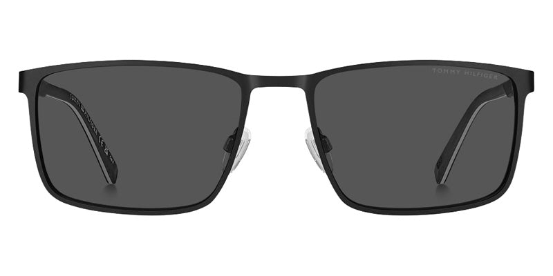 Black (0807IR) Sunglasses (TH 2319/S 0807IR 59) by Tommy Hilfiger. Size: 59-19-145, Shape: Rectangle, Material: Stainless Steel and Silicone.