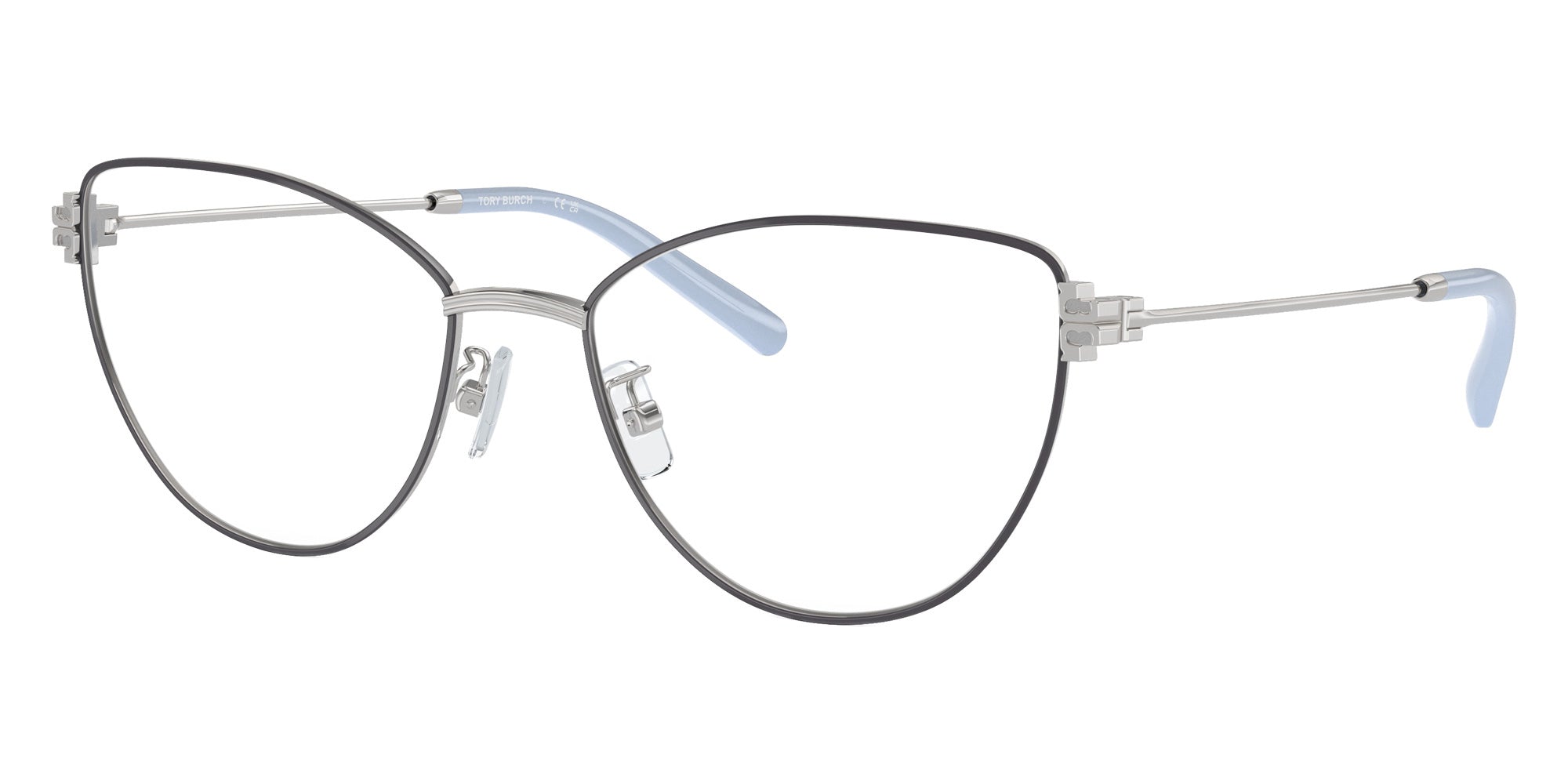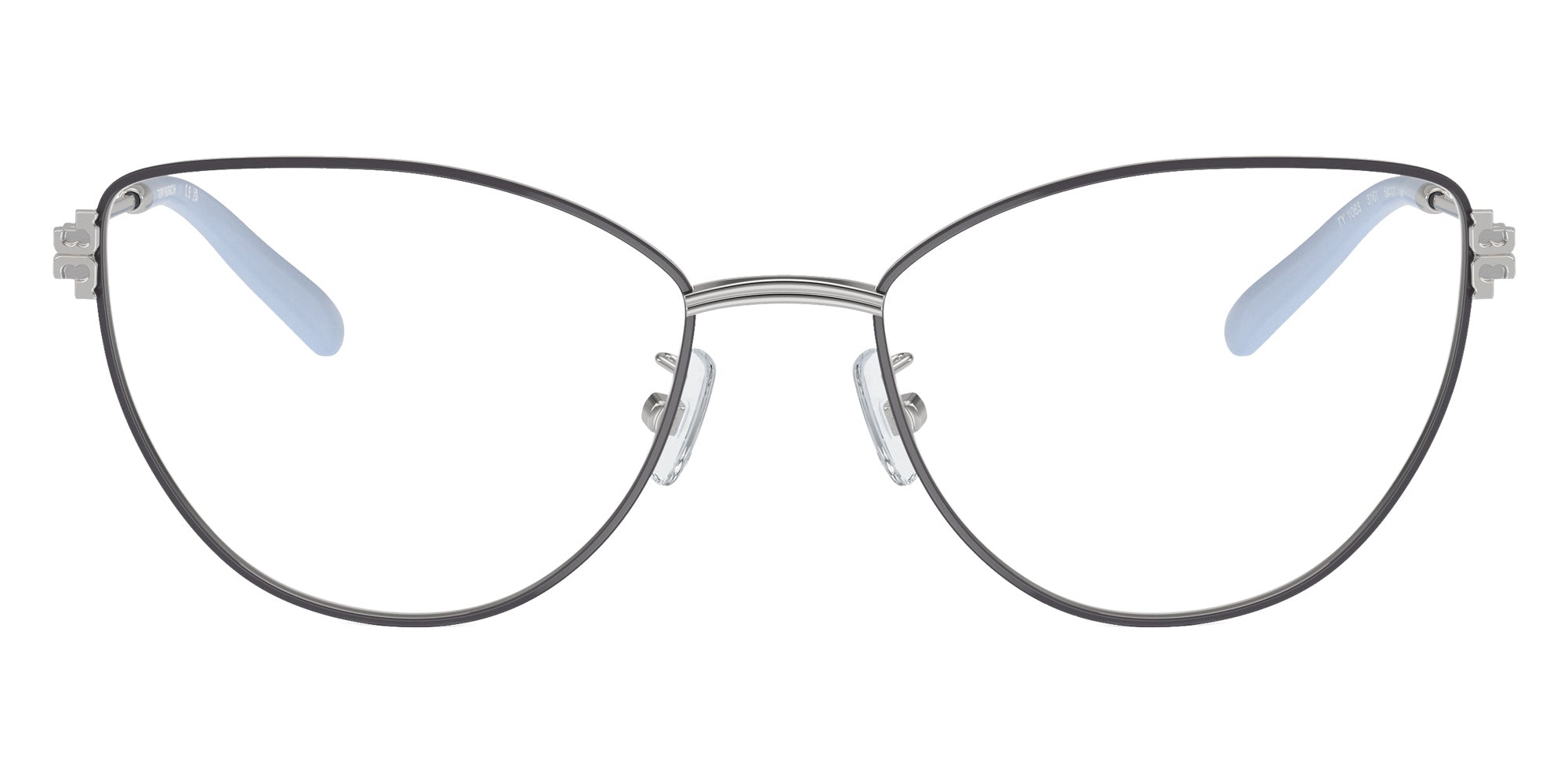 Silver (3161) Eyeglasses (TY1083 3161 54) by Tory Burch. Size: 54-17-140, Shape: Cat-Eye, Material: Metal.
