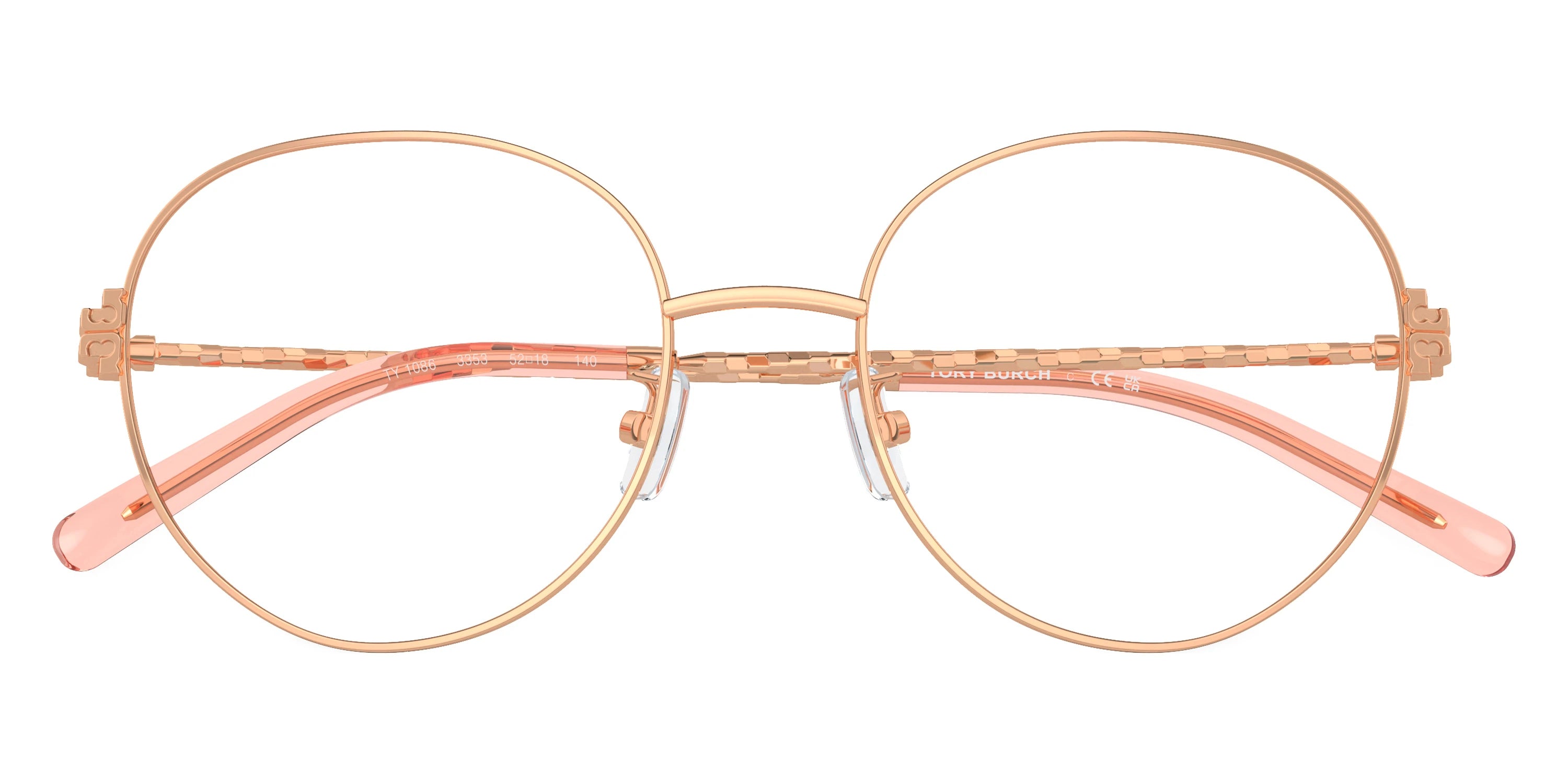 Rose Gold (3353) Eyeglasses (TY1086 3353 52) by Tory Burch™. Size: 52-18-140, Shape: Round, Material: Metal.