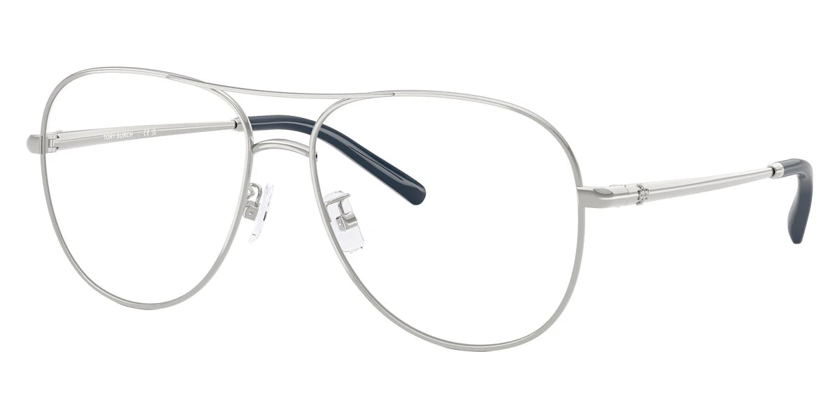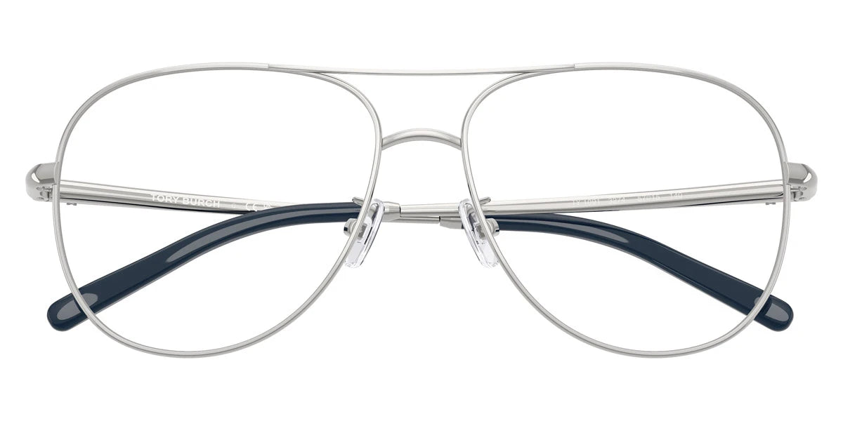Silver (3274) Eyeglasses (Eleanor TY1091 3274 57) by Tory Burch™. Size: 57-15-140, Shape: Aviator, Material: Metal.