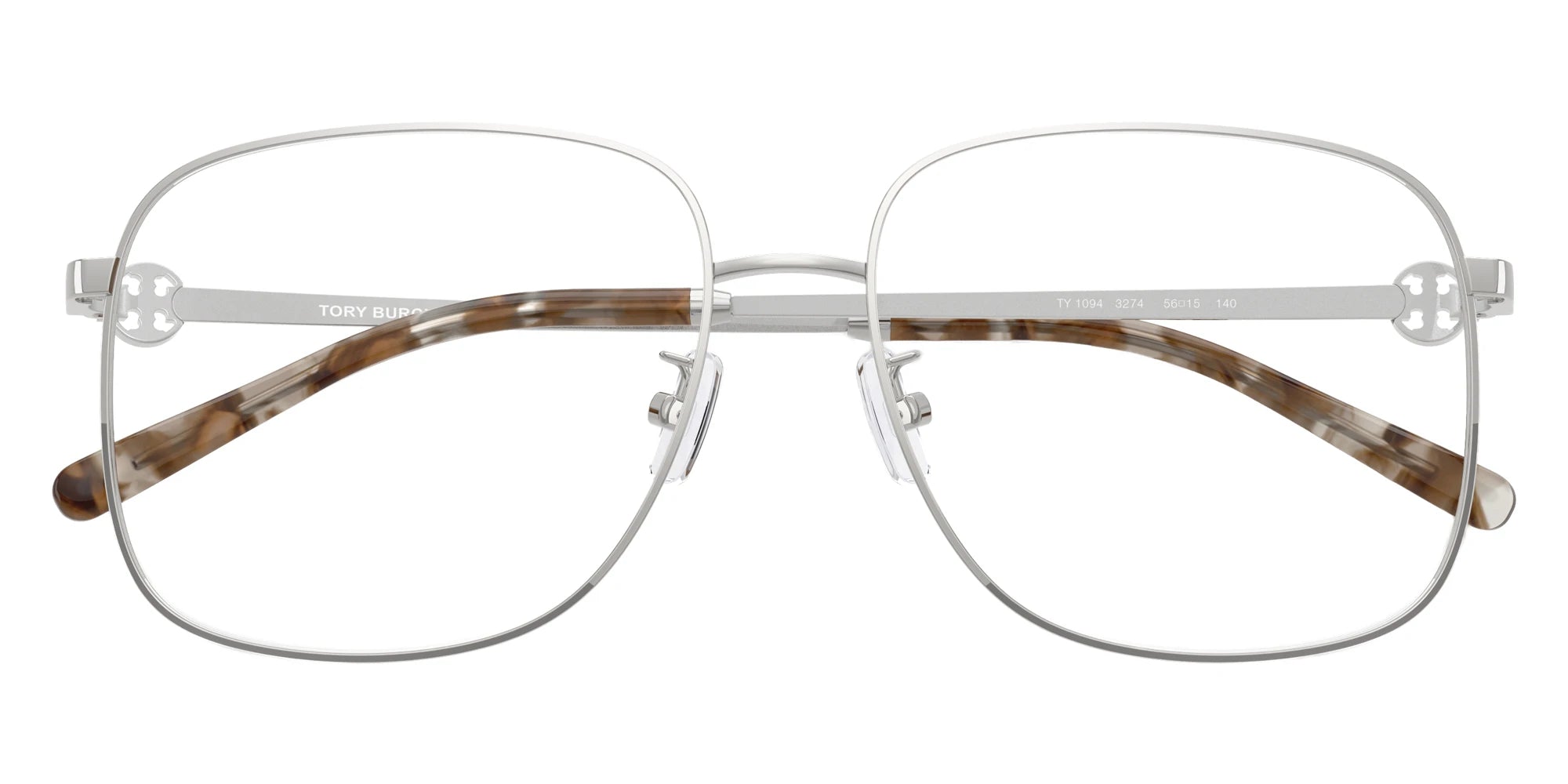 Silver (3274) Eyeglasses (TY1094 3274 56) by Tory Burch™. Size: 56-15-140, Shape: Square, Material: Metal.