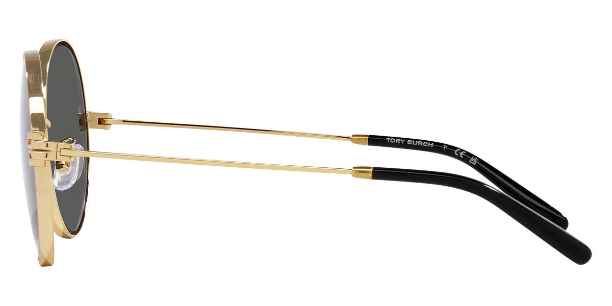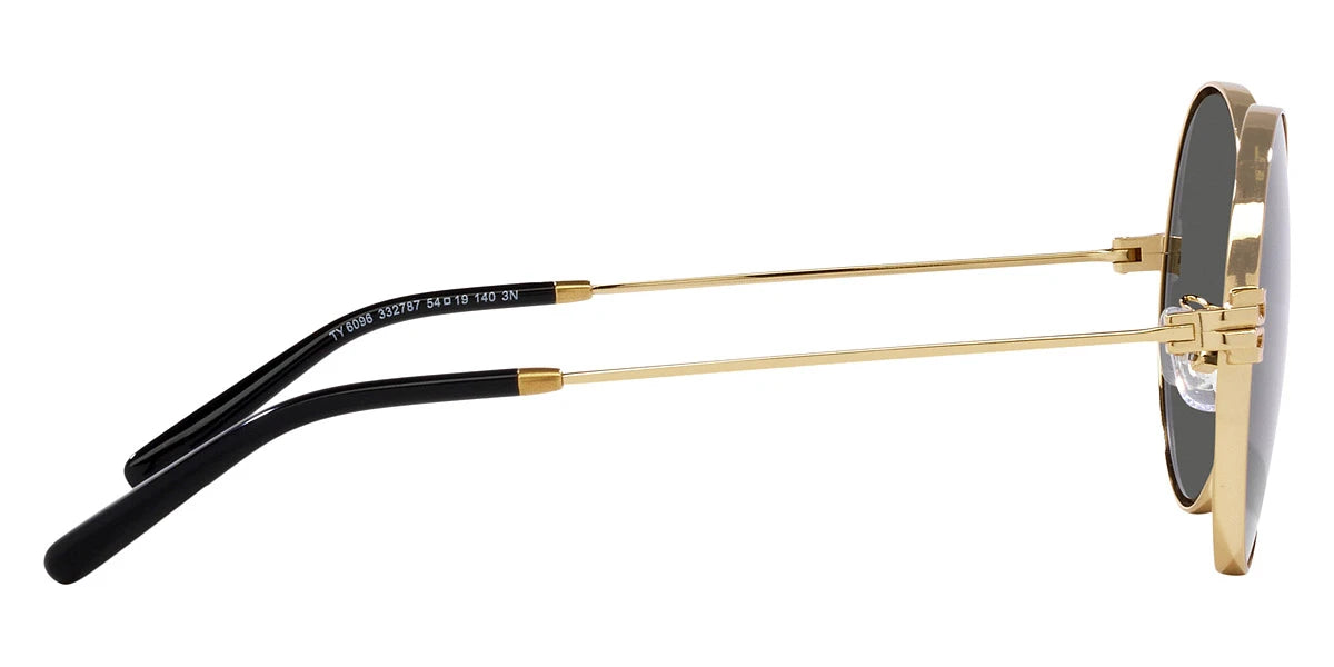 Gold (332787) Sunglasses with Dark Gray lenses (Eleanor TY6096 332787 54) by Tory Burch™. Size: 54-19-140, Shape: Round, Material: Metal.