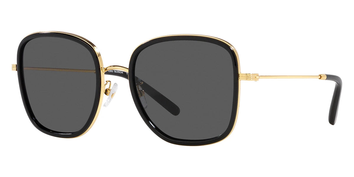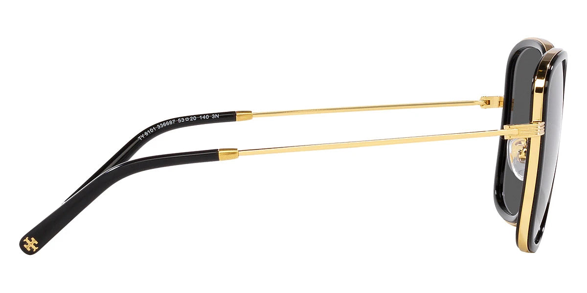 Black (336687) Sunglasses with Dark Gray lenses (TY6101 336687 53) by Tory Burch™. Size: 53-20-140, Shape: Square, Material: Metal.