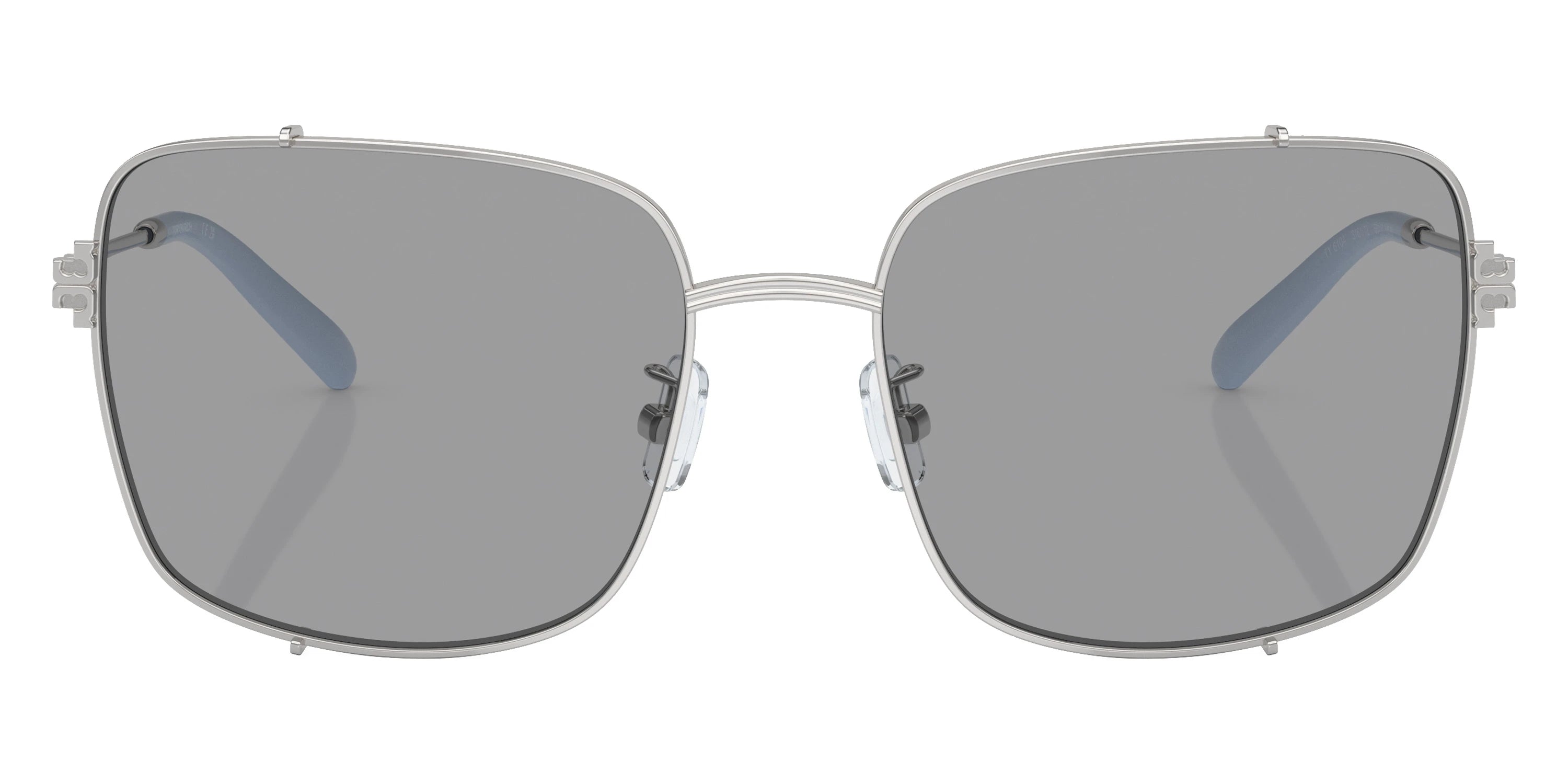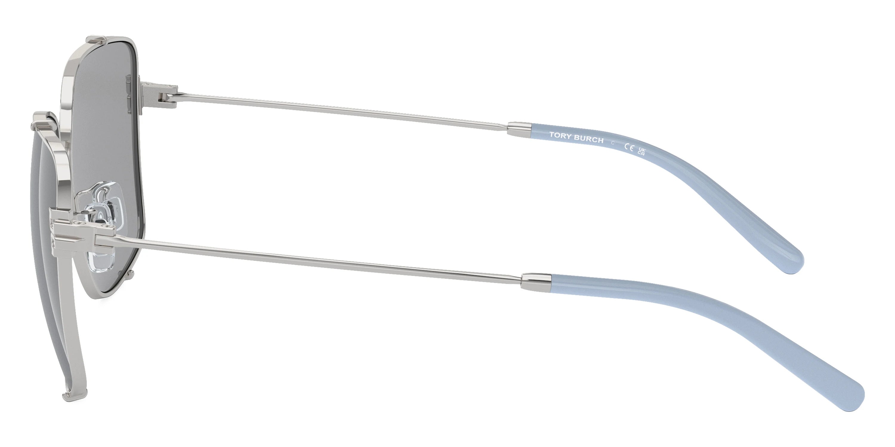 Silver (316172) Sunglasses with Light Blue Mirrored lenses (Eleanor TY6104 316172 56) by Tory Burch™. Size: 56-17-140, Shape: Rectangle, Material: Metal.