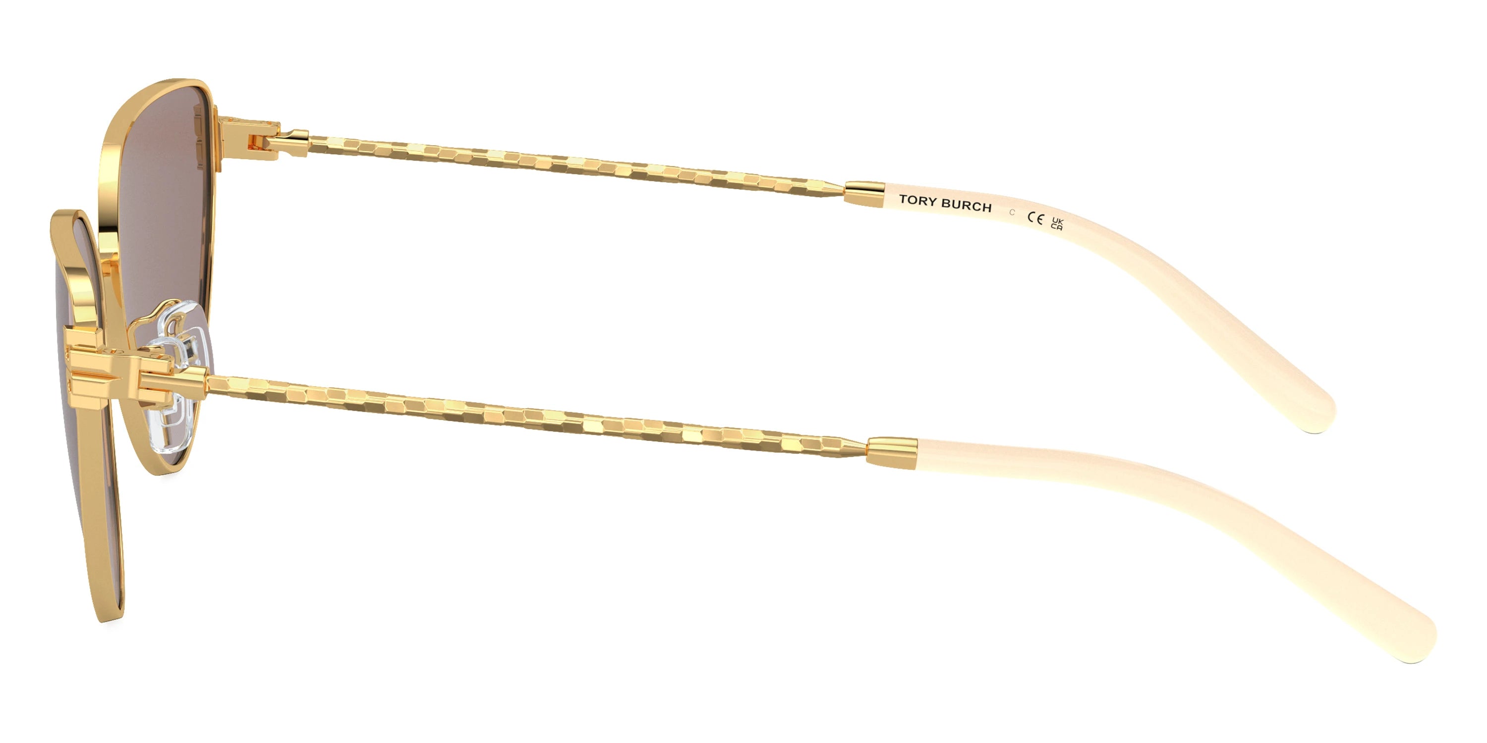 Gold (33437N) Sunglasses with Light Purple and Brown Mirrored lenses (TY6110 33437N 56) by Tory Burch™. Size: 56-16-140, Shape: Cat-Eye, Material: Metal.