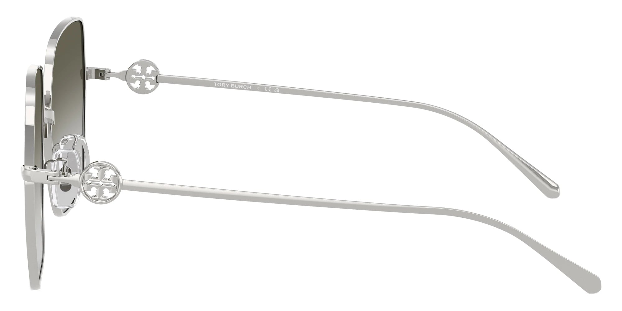 Brushed Light Gold (336213) Sunglasses with Brown Gradient lenses (TY6118D 336213 58) by Tory Burch™. Size: 58-16-145, Shape: Square, Material: Metal.