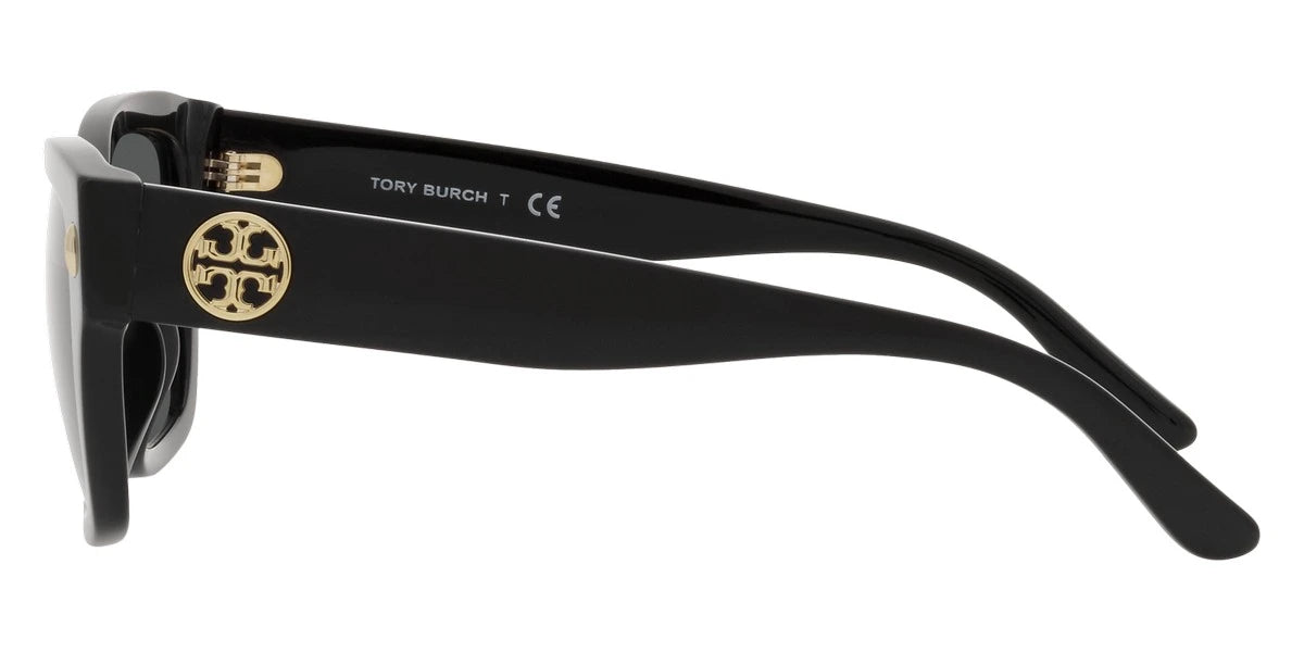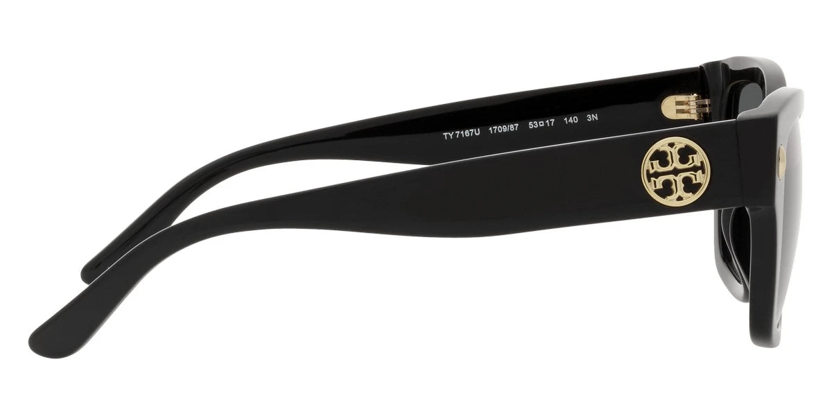 Black (170987) Sunglasses with Gray Solid lenses (TY7167U 170987 53) by Tory Burch™. Size: 53-17-140, Shape: Rectangle, Material: Plastic.