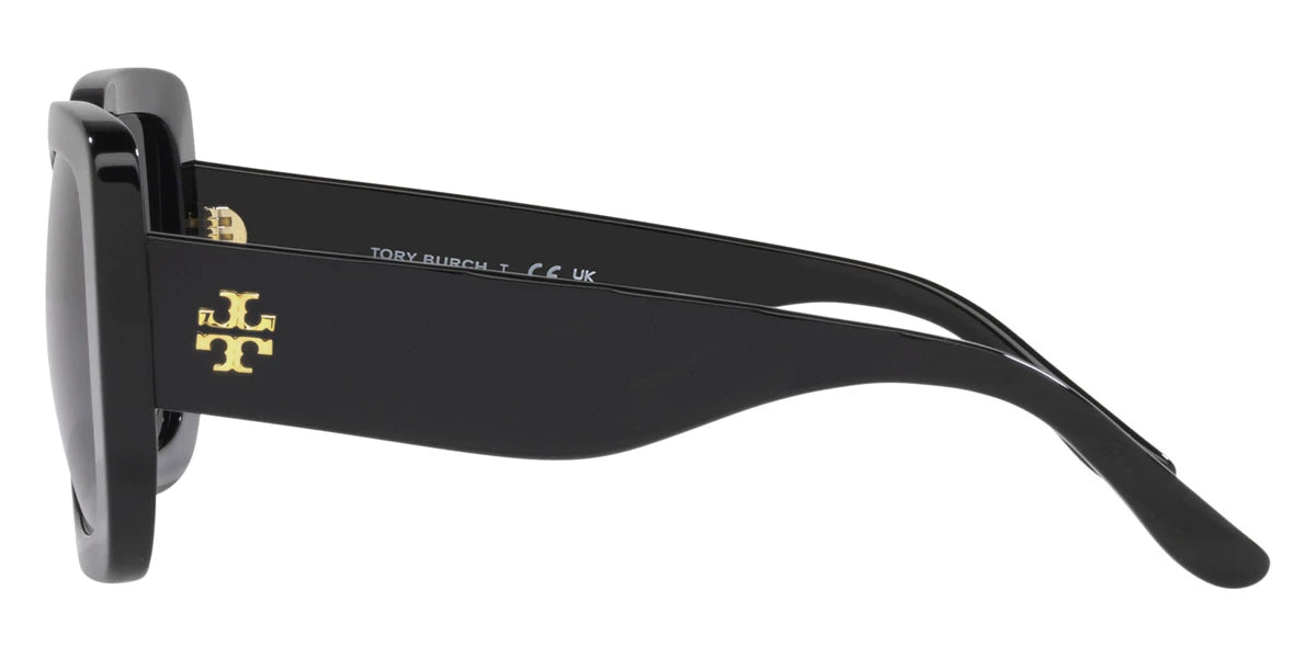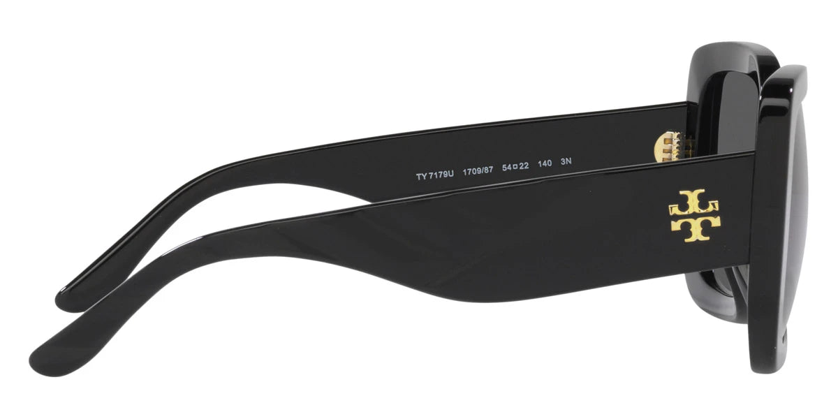 Black (170987) Sunglasses with Solid Gray lenses (TY7179U 170987 54) by Tory Burch™. Size: 54-22-140, Shape: Butterfly, Material: Plastic.
