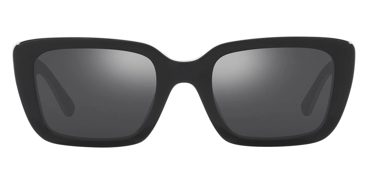 Black White Trilayer (19466G) Sunglasses with Gray Mirrored Silver lenses (Miller TY7190U 19466G 51) by Tory Burch™. Size: 51-21-140, Shape: Rectangle, Material: Acetate.