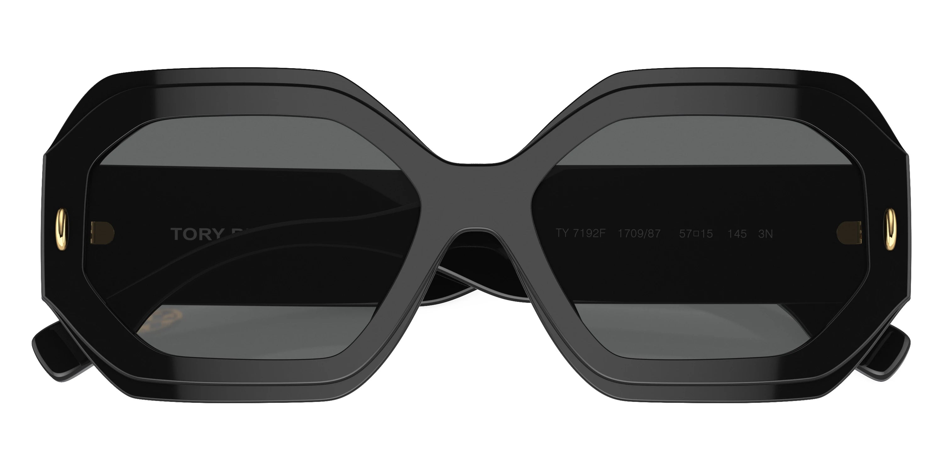 Black (170987) Sunglasses with Dark Gray lenses (TY7192F 170987 57) by Tory Burch™. Size: 57-15-145, Shape: Irregular, Material: Acetate.