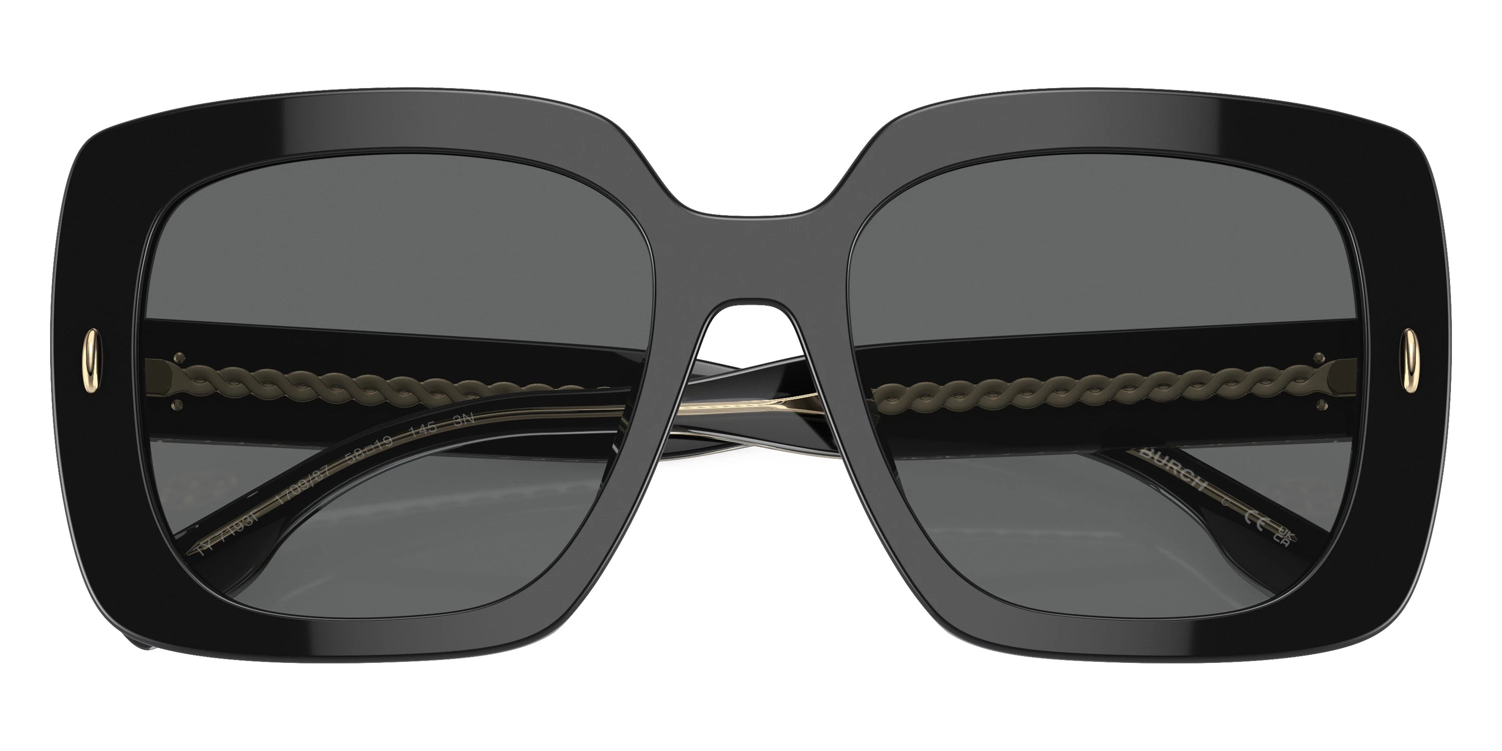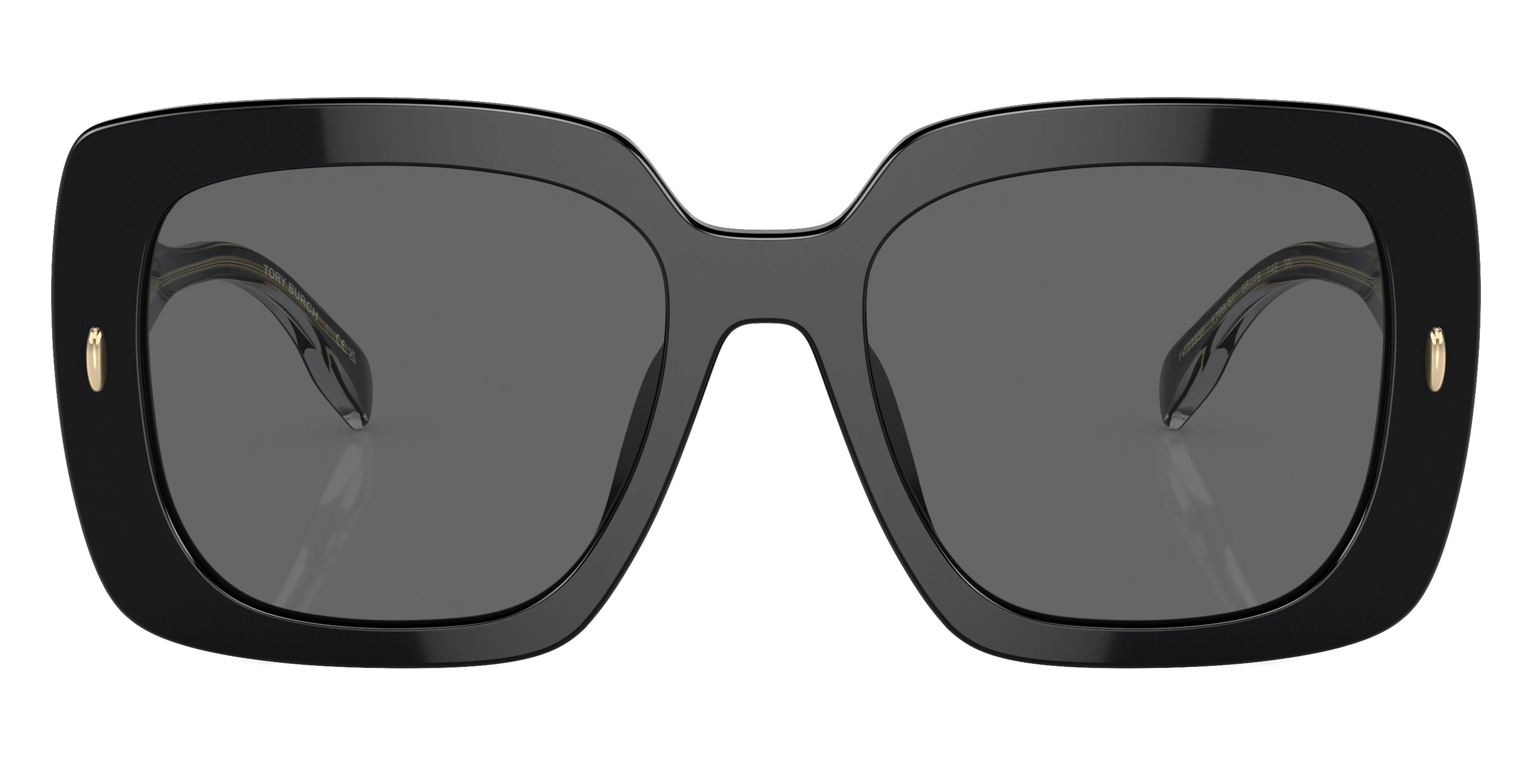 Black/Clear (170987) Sunglasses with Dark Gray lenses (TY7193F 170987 58) by Tory Burch™. Size: 58-19-145, Shape: Square, Material: Acetate.