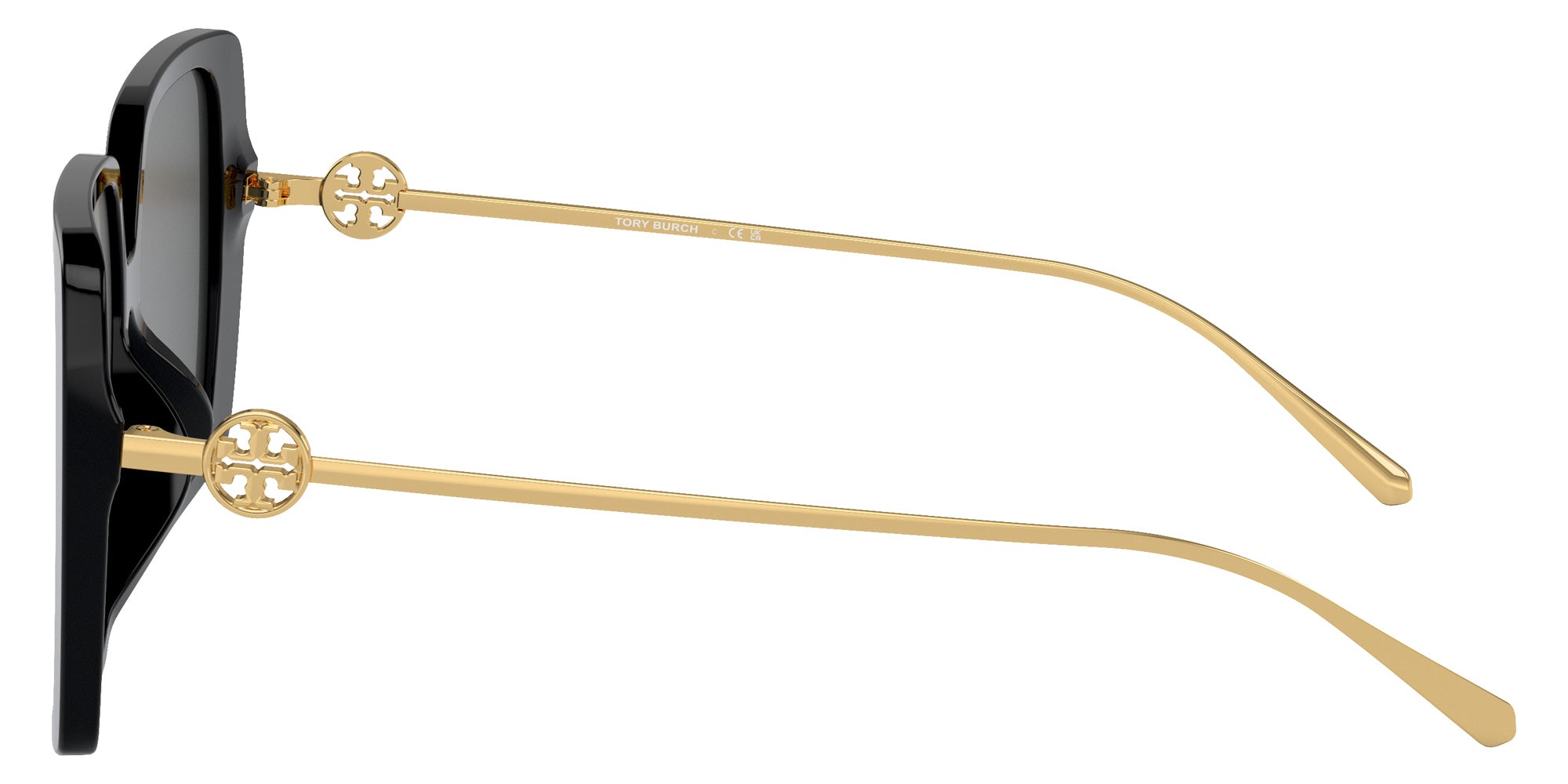 Black (170987) Sunglasses (TY7205D 170987 56) by Tory Burch. Size: 56-14-145, Shape: Square, Material: Acetate and Metal.