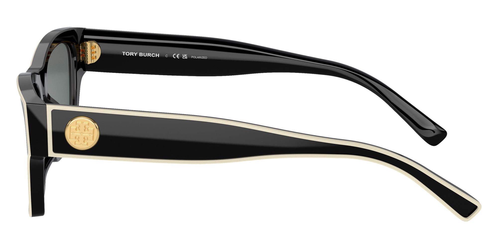 Black/Ivory (200481) Sunglasses (TY7207U 200481 53) by Tory Burch. Size: 53-18-145, Shape: Rectangle, Material: Acetate.