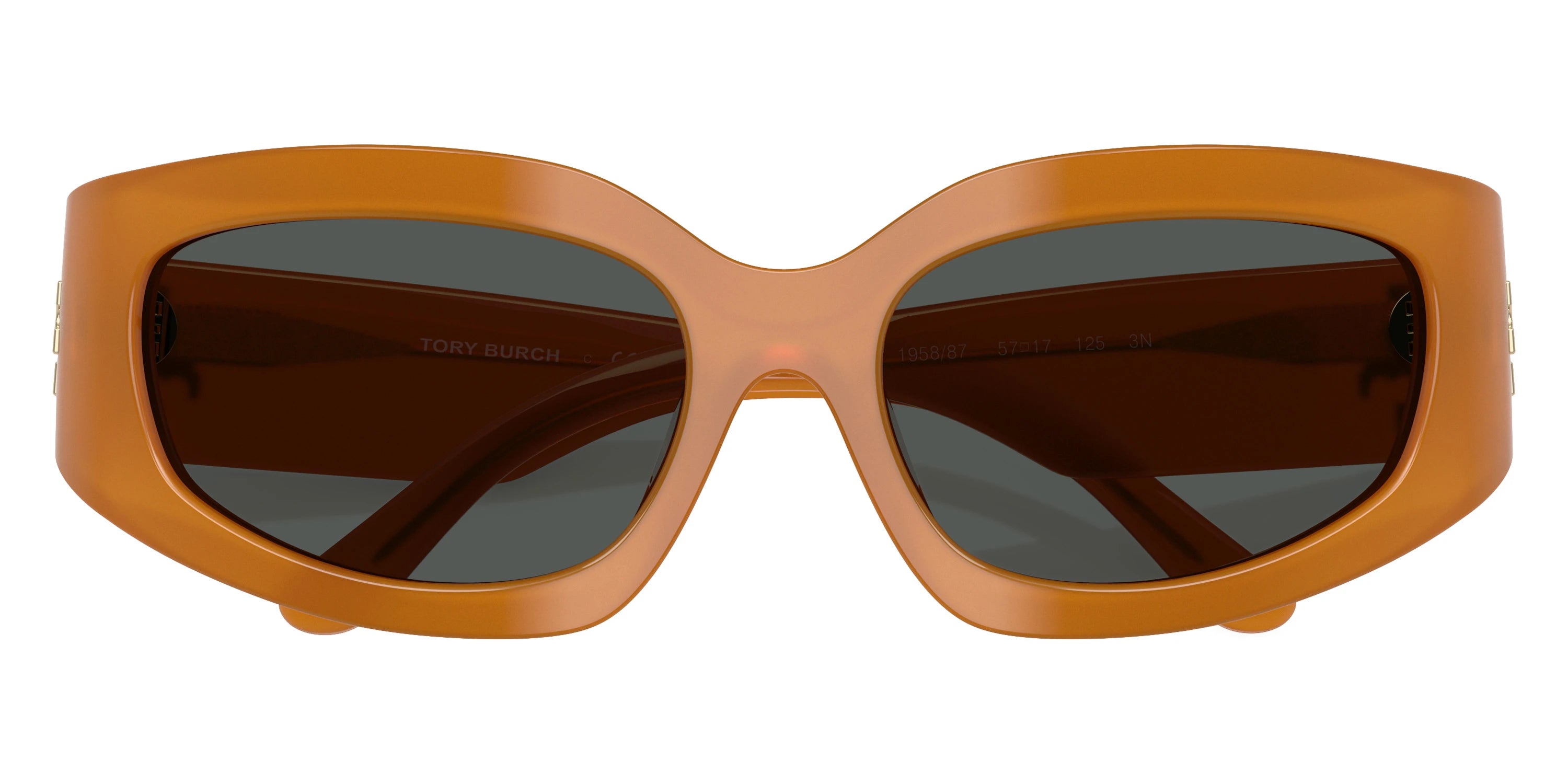 Opal Dark Orange (195887) Sunglasses with Gray lenses (Eleanor TY7211 195887 57) by Tory Burch™. Size: 57-17-125, Shape: Irregular, Material: Acetate.